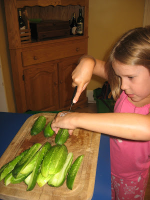 So last fall when we grew cucumbers in our garden, I realized we should show her how to make pickles out of them.