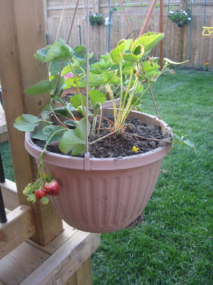 When we were at the greenhouse that morning, Makenna and Jack spotted the strawberry plants and begged to bring them home. They are hung off the deck, and I seriously doubt I will see very many, as they are both checking them constantly and eating them as quickly as they are ripening.